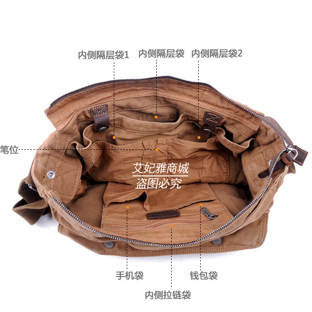 European and American fashion canvas bag shoulder bag diagonal bag casual bag retro messenger bag business retro men's bag big bag tide