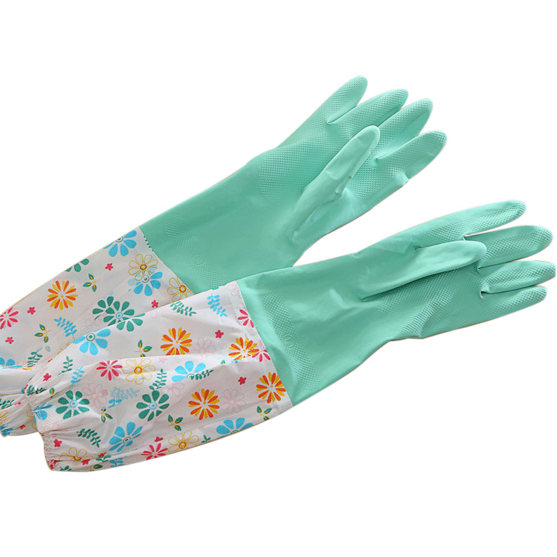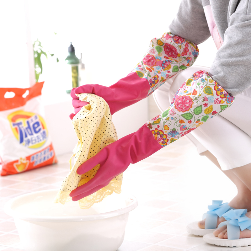 Dishwashing gloves Women's summer work housework kitchen cleaning rubber washing clothes Rubber velvet gloves household waterproof