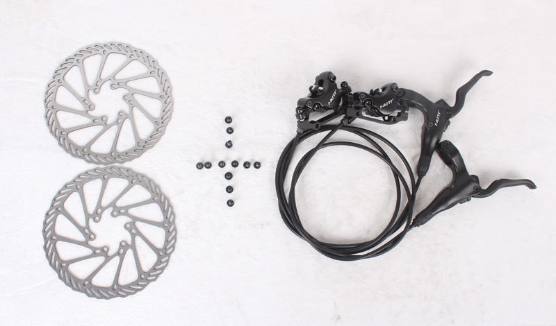 Left and right pairs without discs, left and right pairs with discs, single left rear wheel disc brakes, one without discs, single right front wheel disc brakes, one without disc