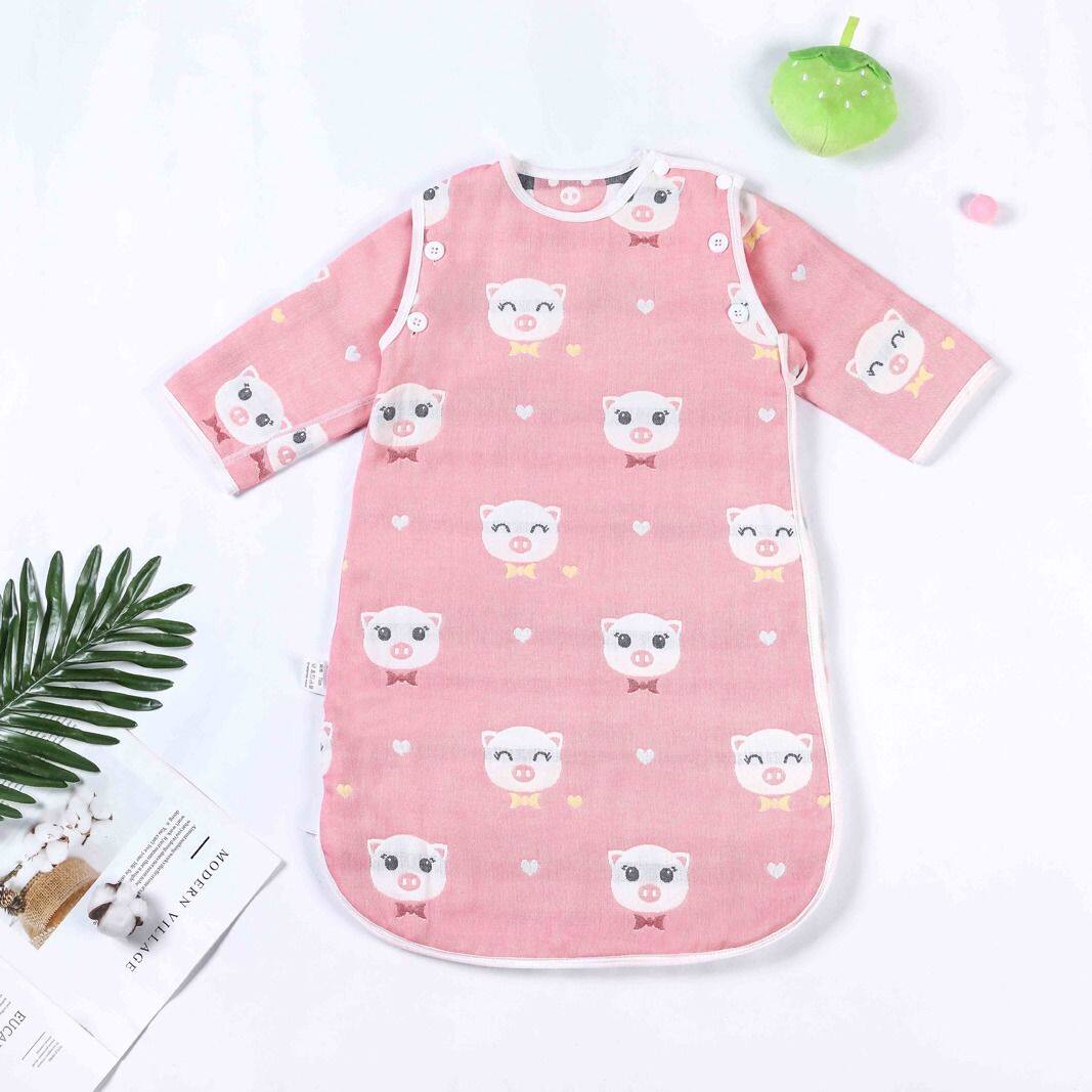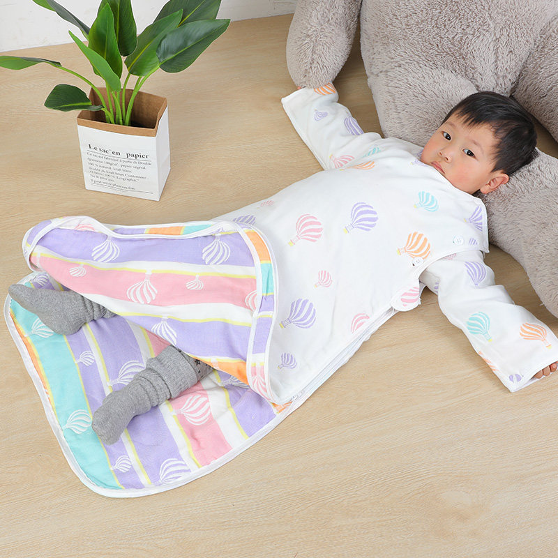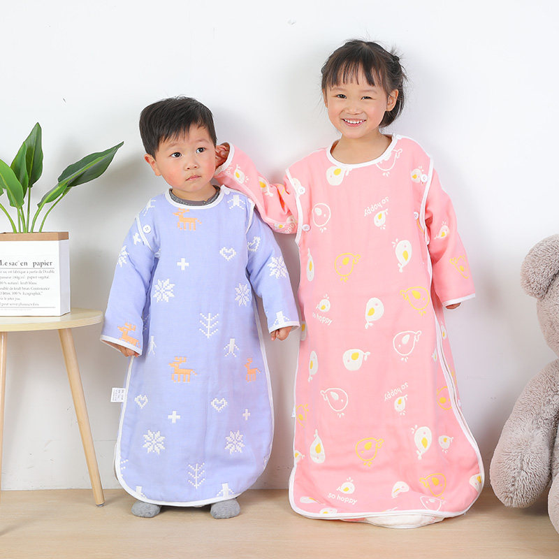 3 layers 6 layers of cotton gauze children's sleeping bag baby kicking quilt spring and autumn thin Four Seasons universal double zipper removable sleeve