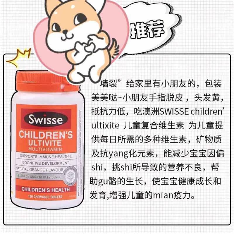 Australian Swisse Children Integrated Complex Vitamin Chewable Tablets Orange Taste 120 slices of 2-12-year-old strong free