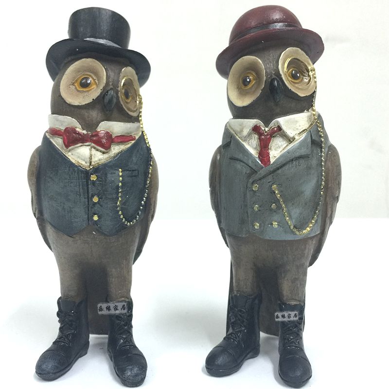 American Country Style Retroit Gentleman Resin Owl Fittings Software Decorations Home Desktop Office Props