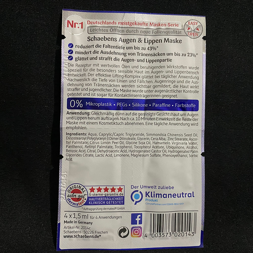 German Snows Schaebens Snowben Poetry Mask World Q10 Tight Eye Film Lip Film Eyelip Film 4x1 5