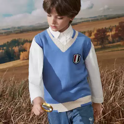 2021 autumn and winter new children's vest vest boys pullover sweater sweater vest middle and large children's Korean cardigan