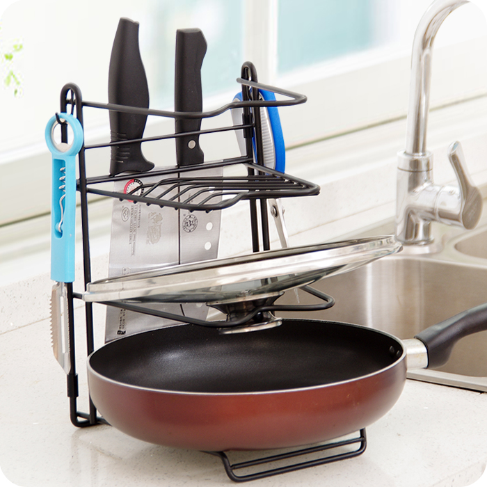 Kitchen multifunction shelve cover shelf metal tool holder pan shelf seasoning containing layer shelf multilayer finishing storage