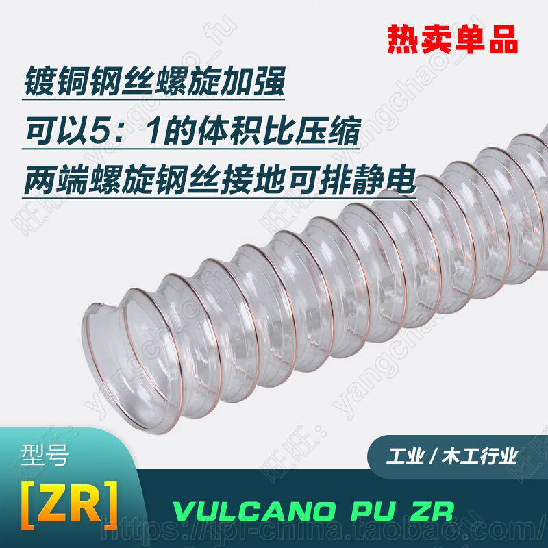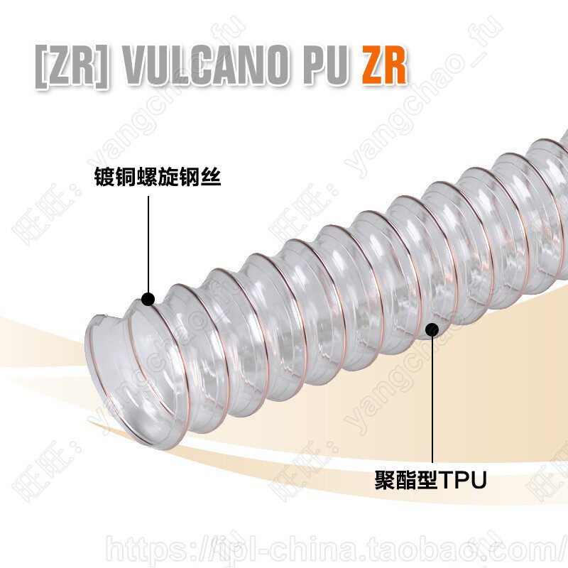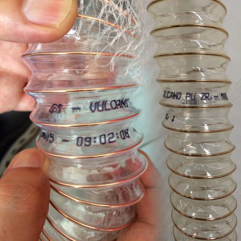 Italy IPL transparent PU polyurethane copper-plated steel wire reinforced woodworking vacuuming elastic pipe food duct hot sale