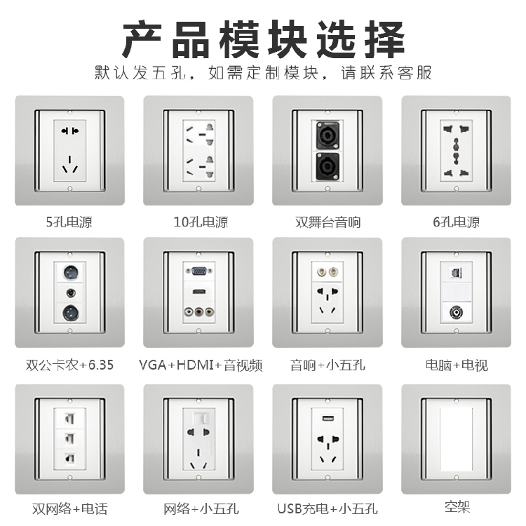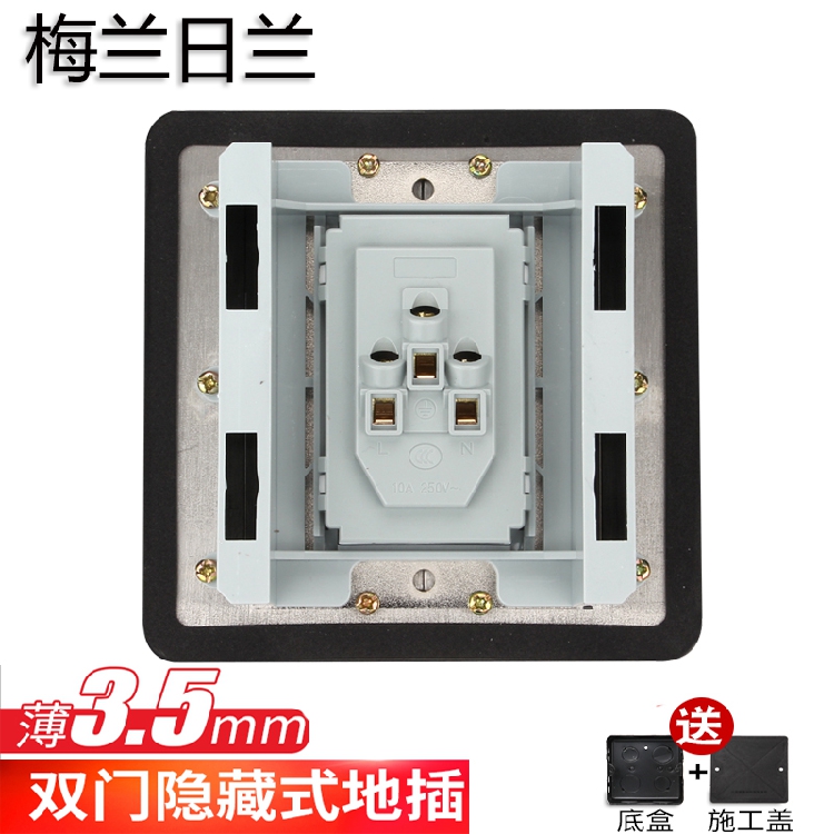 Melan Stainless Steel Socket Waterproof Double Open Door Hidden Five-Hole Open Power Floor Ground Socket