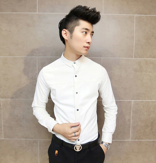 Hot white long sleeve shirt autumn thin coat pure men's shirt made a repair Han version of the British tide