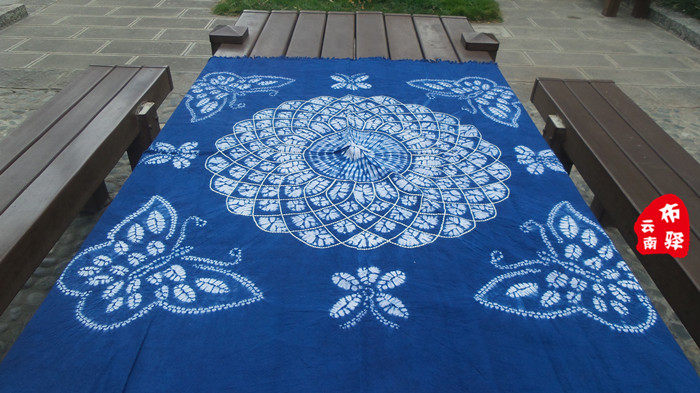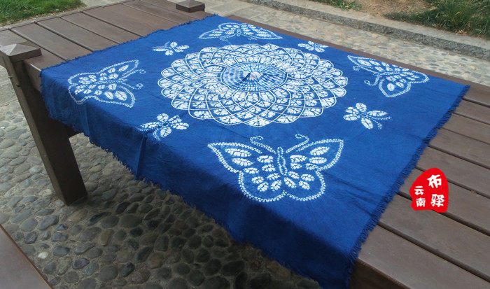 Yunnan Dali Handmade Dyed Bed Linen Table Cloth Hanging Curtain Sand Release-Butterfly Romance 3 (120X120CM)