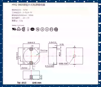 SMD active electromagnetic HYG-9650B patch buzzer DC patch buzzer 9650 power-on