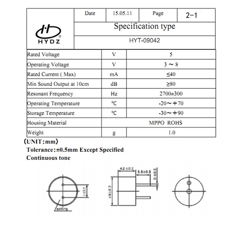 Active small volume HY-9042 buzzer Electromagnetic DC 9042 active buzzer electromagnetic turnover 3V5V