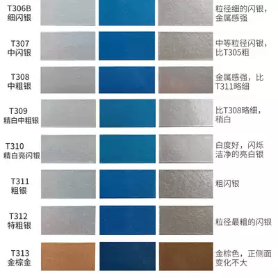 T301 special fine silver 302 fine silver 302B fine silver 303 Silver Silver 304 silver 305 fine flash silver 306 fine flash silver 307 in Flash silver 308 coarse silver 309 fine