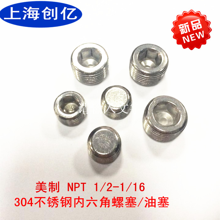 Stainless steel 304 pipe thread inner hexagonal oil plug screw plug bulky head American NPT 1 2-1 16