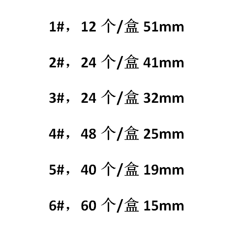 51mm(12 cylinders) 41mm(24 cylinders) 32mm(24 cylinders)25mm(48 cylinders) 19mm(40 cylinders) 15mm(