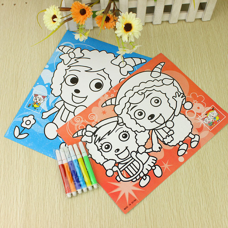 Children fill color painting with watercolor drawing pen cartoon fill color book with paintbrush painted graffiti color coating color painting batch-Taobao