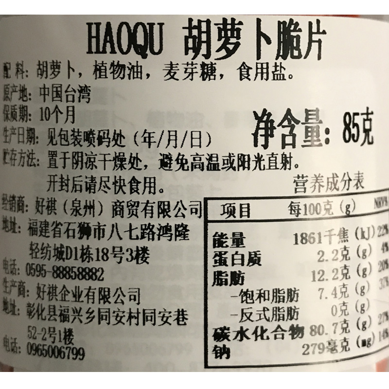 Good qi Taiwan Imports Carrot Dry 85g dehydrated fruits and vegetables dried vegetables dried fruit dry children pregnant women casual snacks