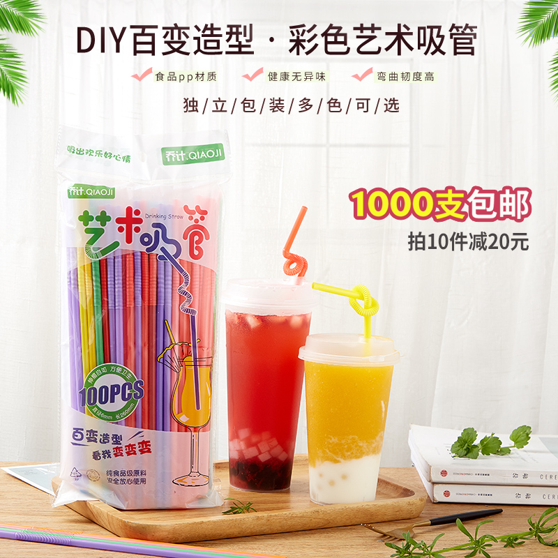 Disposable color art straw drink drink fruit juice milk tea shape straws length 26cm 1000