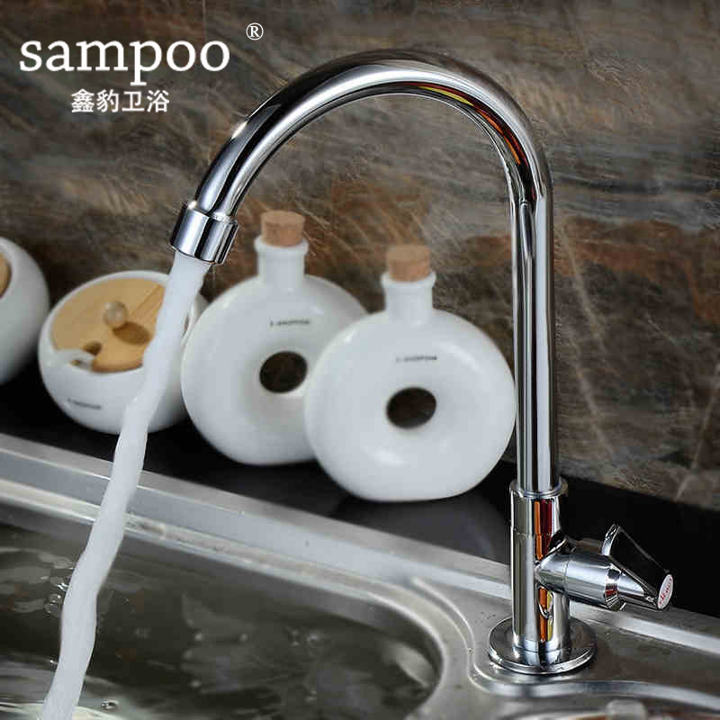 All-copper vertical kitchen single cold water faucet wash basin faucet double sink faucet single cold water 360 degree rotation