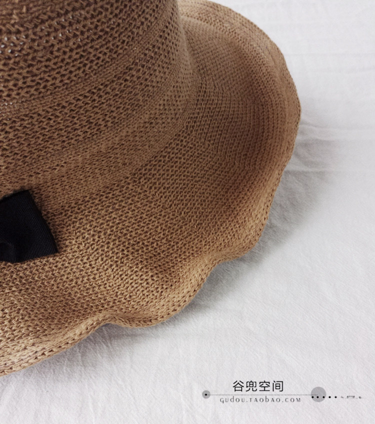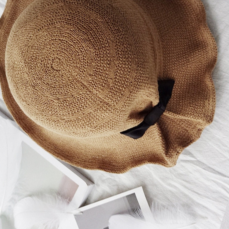 Spring and summer beach outing bow cotton and linen sun hat Korean version of wild elegance foldable sunscreen fisherman hat