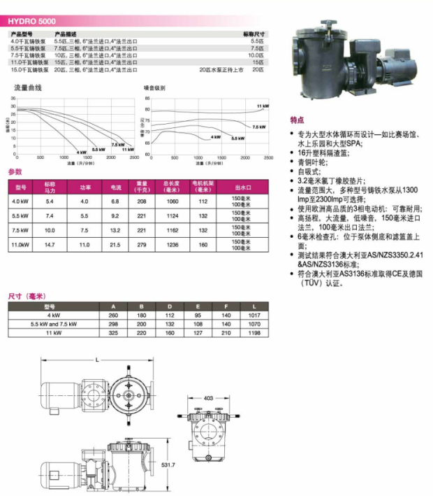 Australia Waterco Water Transport High Hydro5000 Pool Hot Spring Commercial Cast Iron Water Pump 5 5-20HP