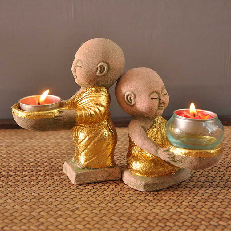 Thai crafts little monk decoration business club Shami stone carving figure candlestick sandstone waterscape decoration