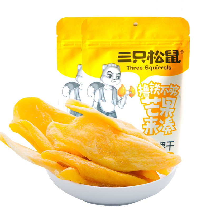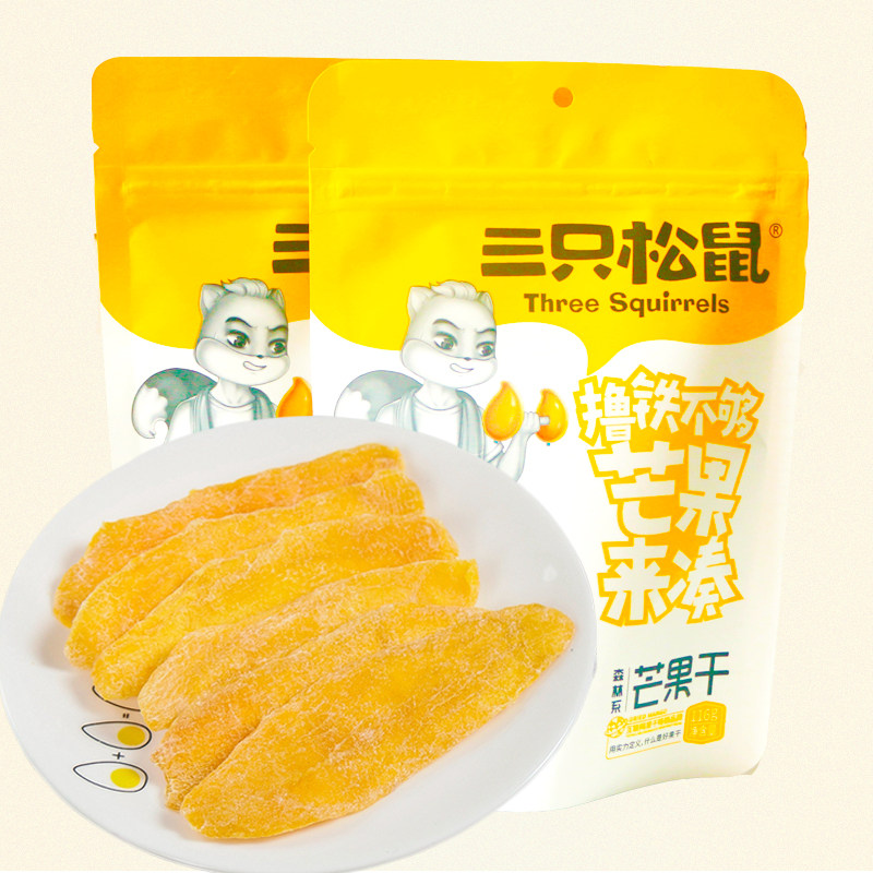 Three squirrels mango dry water fruit dry casual snacks with candied fruits dried 116gx3 bags net red snacks