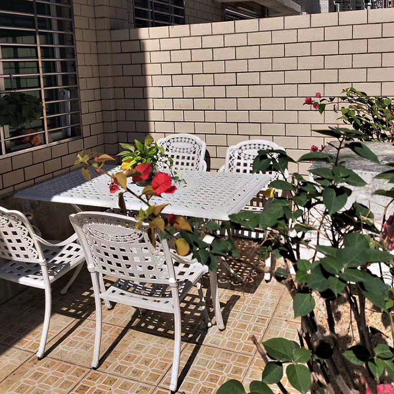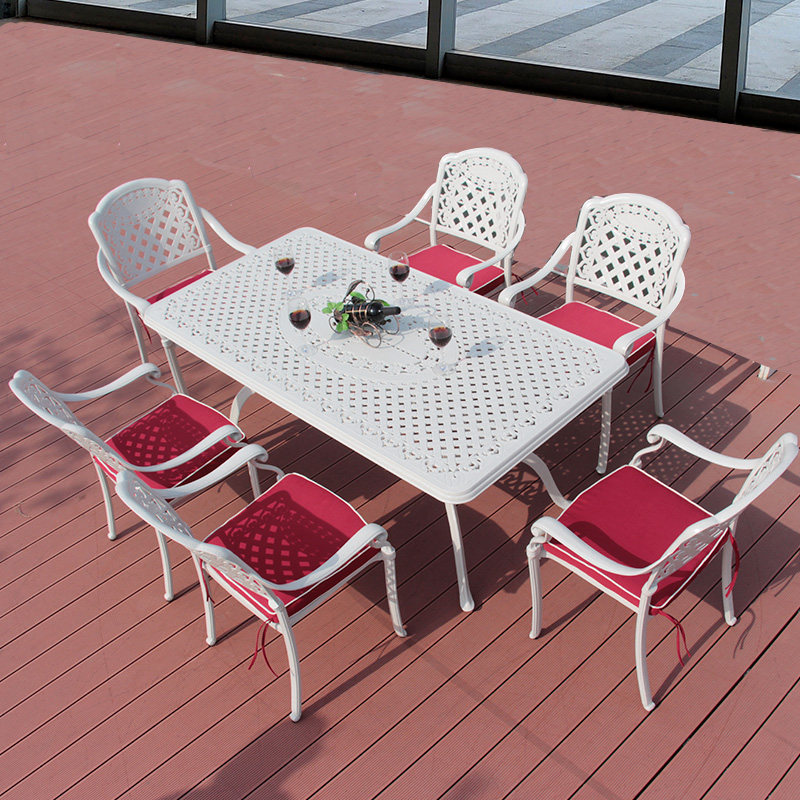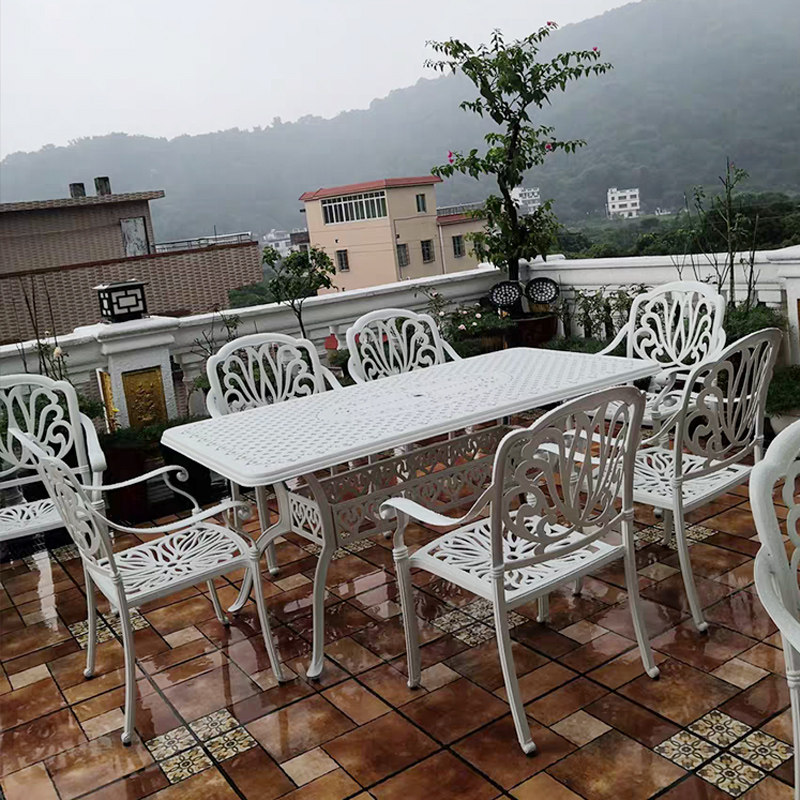 White Maike outdoor furniture courtyard open-air dining table and chairs wrought iron one table six chairs leisure garden cast aluminum table and chairs