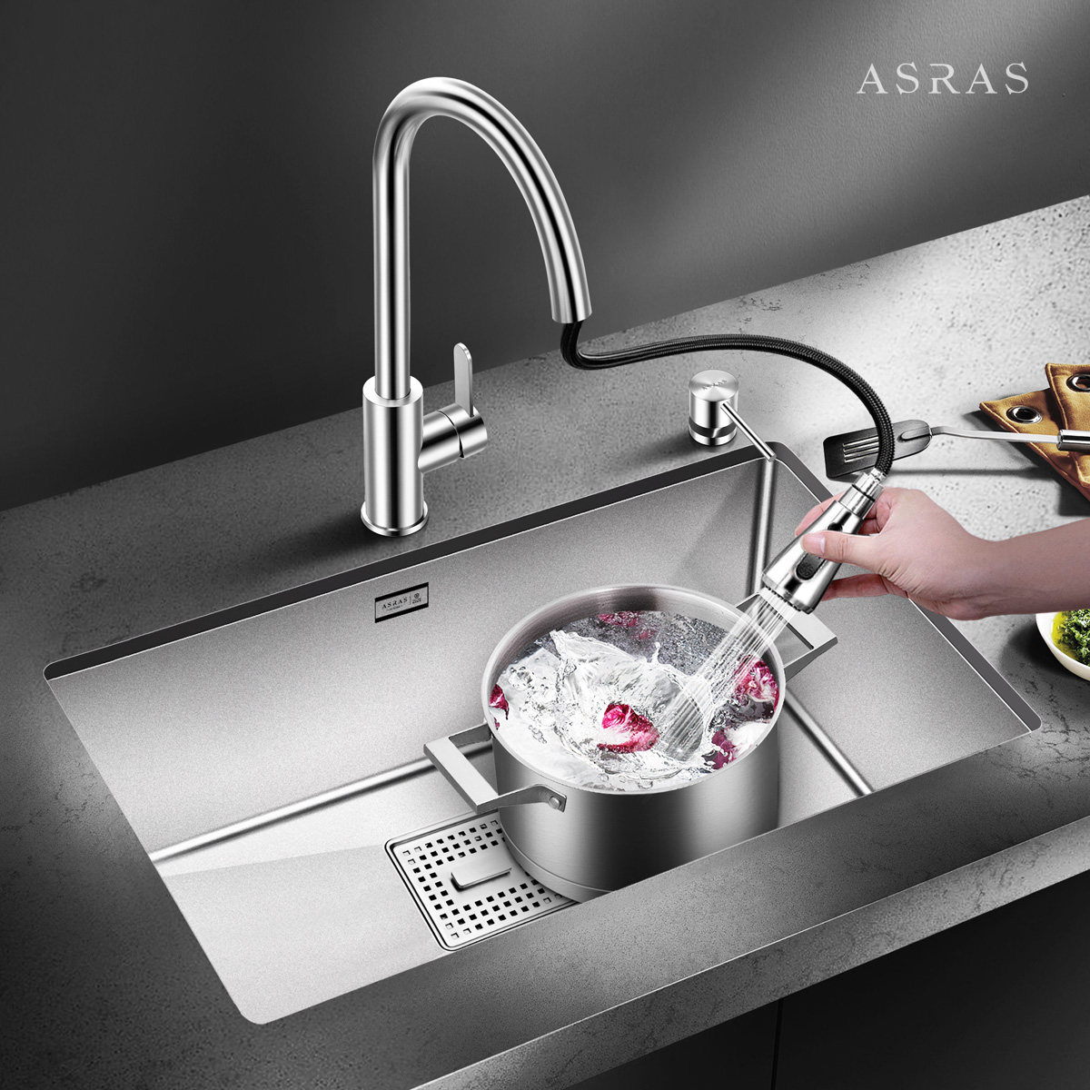 Assas Nanoau Style 4MM Thickened 304 Stainless Steel Handmade Sink Package Big Single Sink Wash Basin