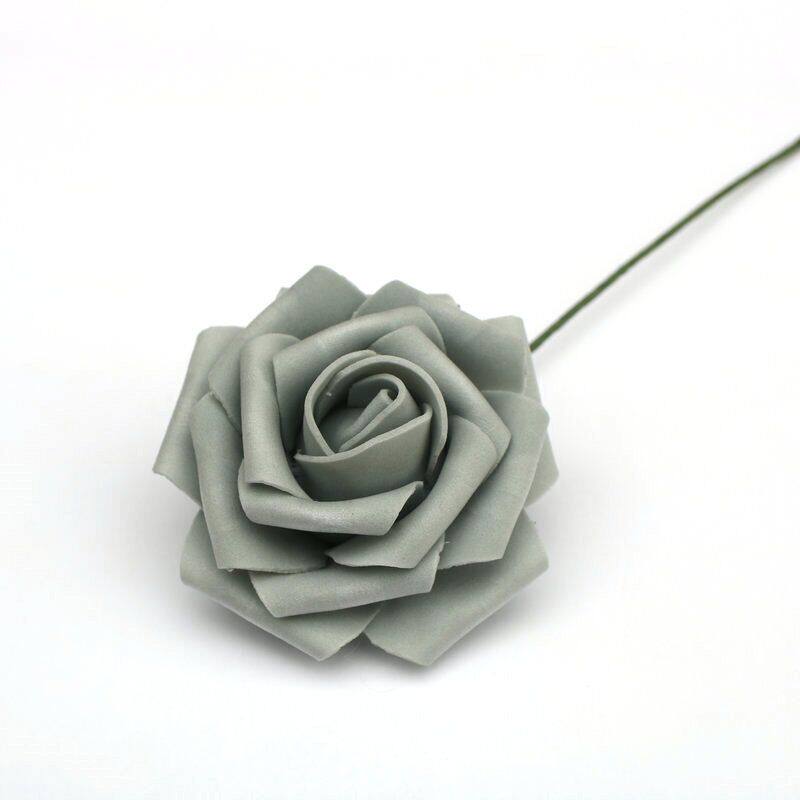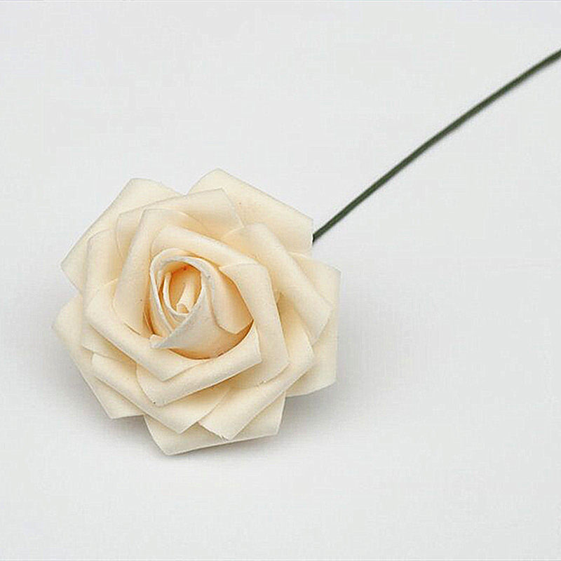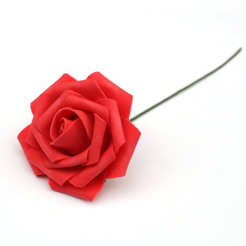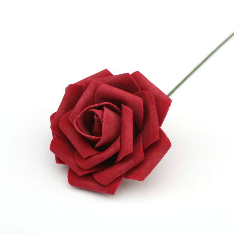 Simulation pe rose flower 7~8cm with rod foam fake flower head 50 pieces wedding candy box cartoon flower DIY material