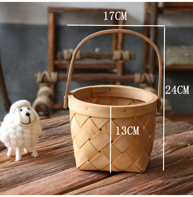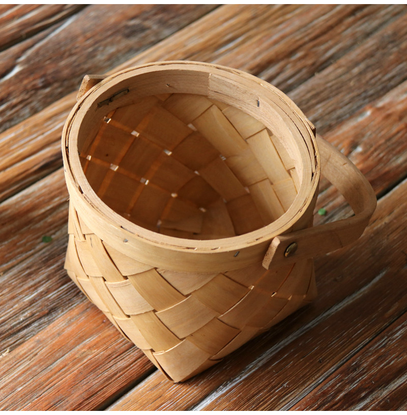 Pastoral wood chip flower basket Mini hand-held flower basket flower arrangement decorative wooden gift storage storage basket model basket