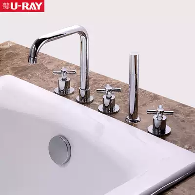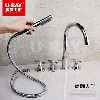 Aoyou bathroom all-copper hot and cold five-piece bathtub faucet cylinder side five-hole bathtub shower wall faucet