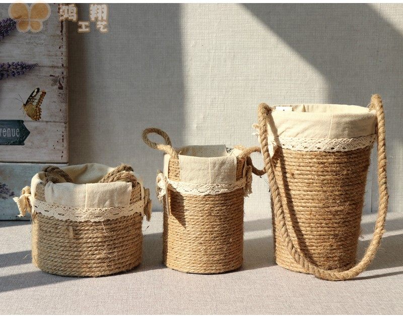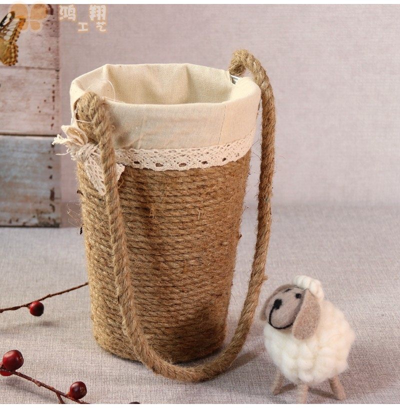Flower basket hemp rope iron pass flower pot decoration flower bucket drying flower decoration flower vase flower arrangement flower arrangement home decoration