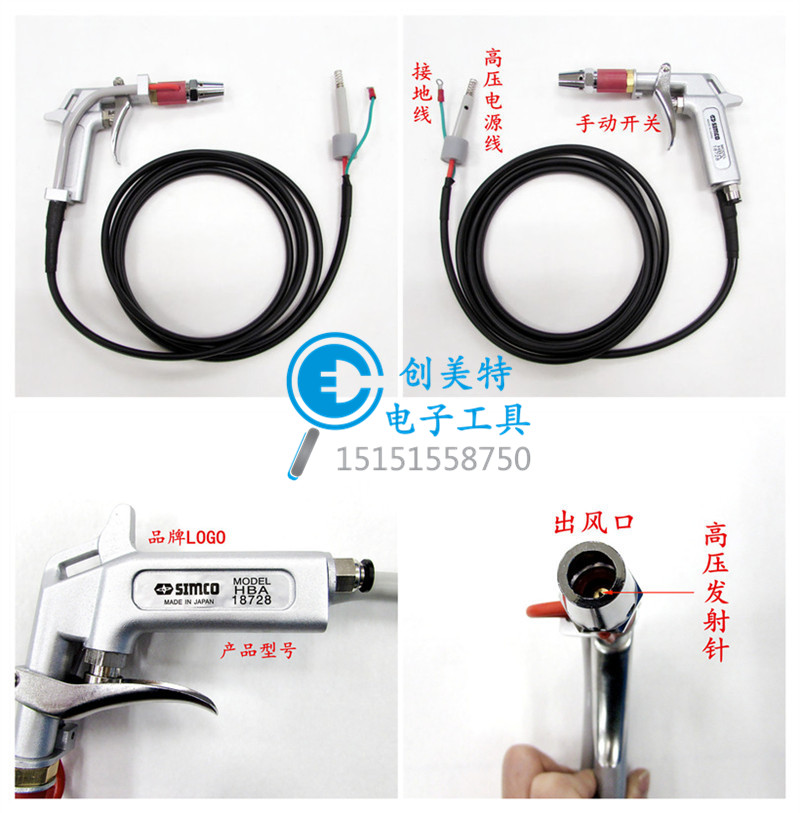 SIMCO-HBA metal tip ion air gun, static removal air gun, electrostatic dust removal gun, dust blowing gun