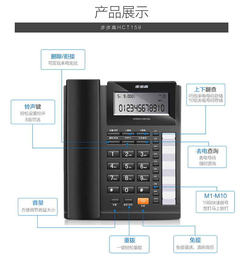 Backgammon HCD159 battery-free cordless telephone landline fashion home office stand-alone wired telephone dual interface
