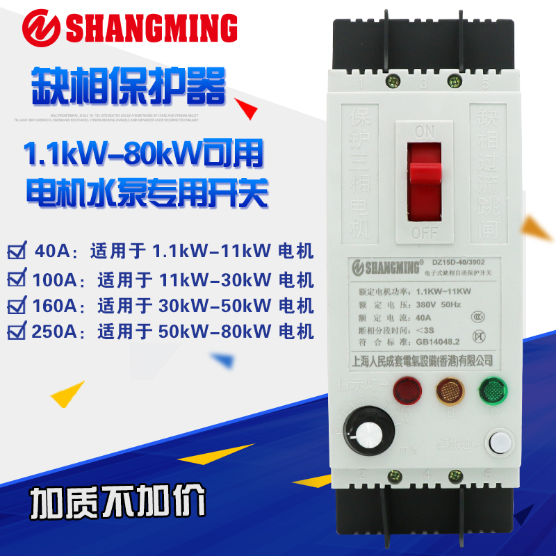 People's electrical DZ15D power adjustable leakage deficiency phase overcurrent protection switch motor water pump three-phase protector