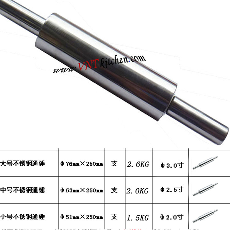 Stainless steel rolling pin Rolling pin Through hammer press noodle stick Solid solid steel flour stick Roller lever stick Press noodle stick