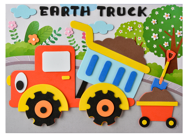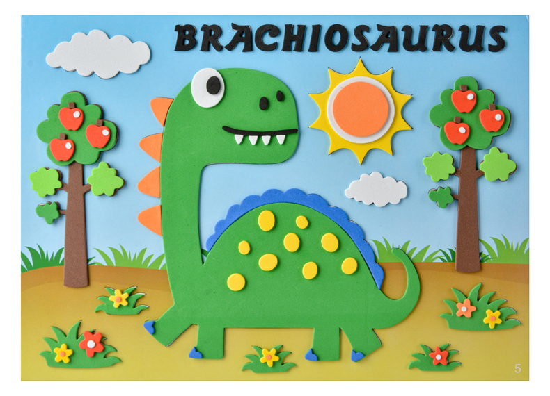 Black girl baby Korean version of animal dinosaur engineering vehicle EVA three-dimensional sticker painting hand-made diy educational toys