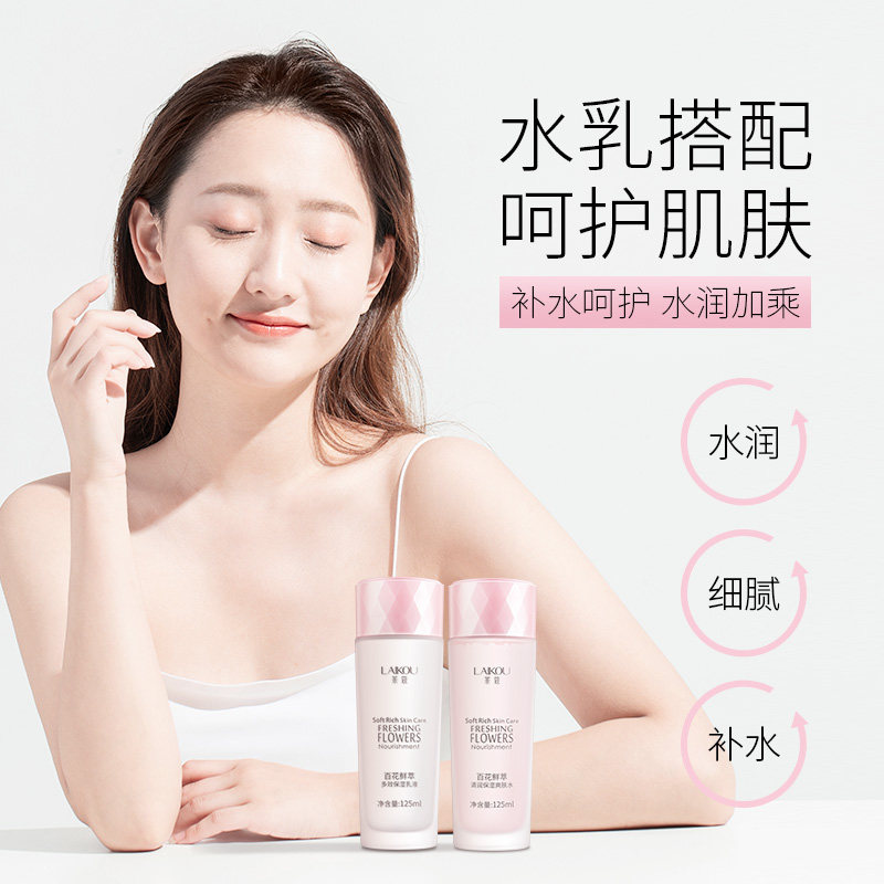 Lekou Shuang Skin Lotion Suit Moisturizing Moisturizing Nourishing Woman Fine Pores Makeup Water Skincare Student Flagship Store