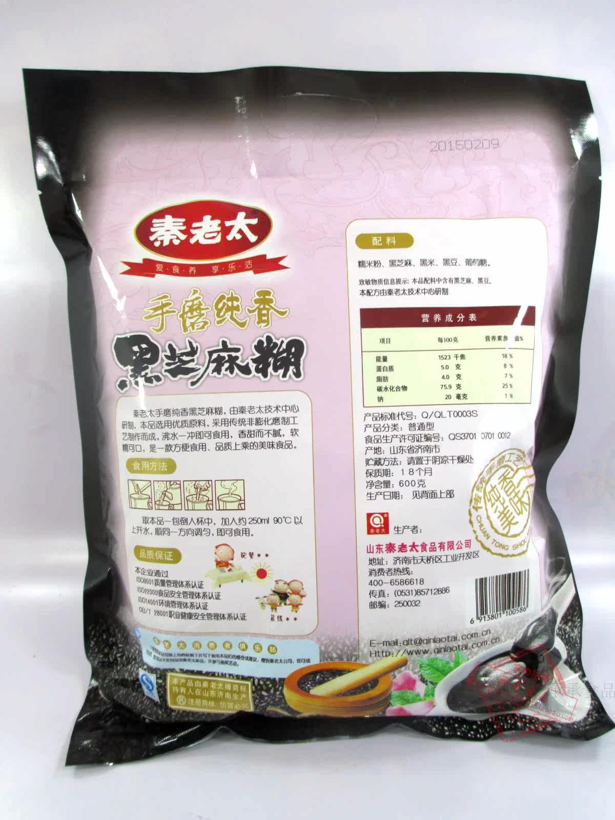 Qin Laotai Black sesame paste Hand mill Pure fragrant black sesame paste 600g Pure breakfast black sesame paste 3 bags