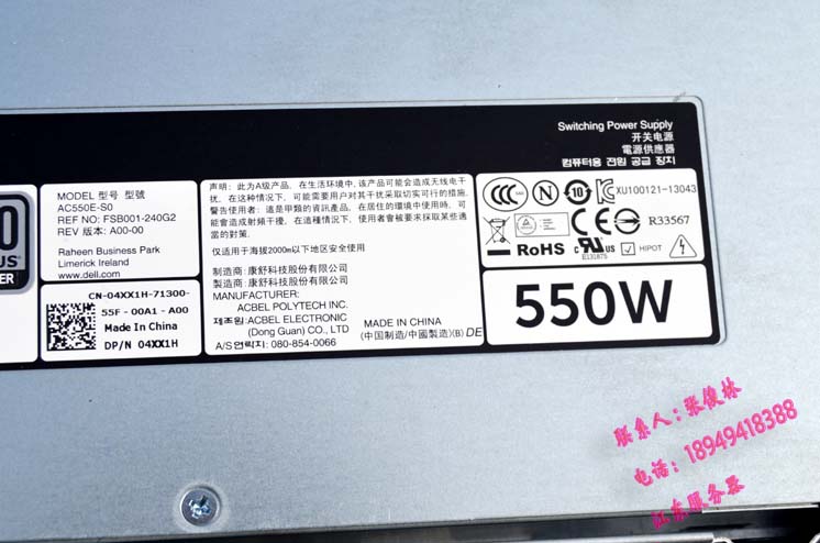 Original fit DELL R420 320 power non redundant power supply 550W AC550E-S0 4XX1H J6J6M