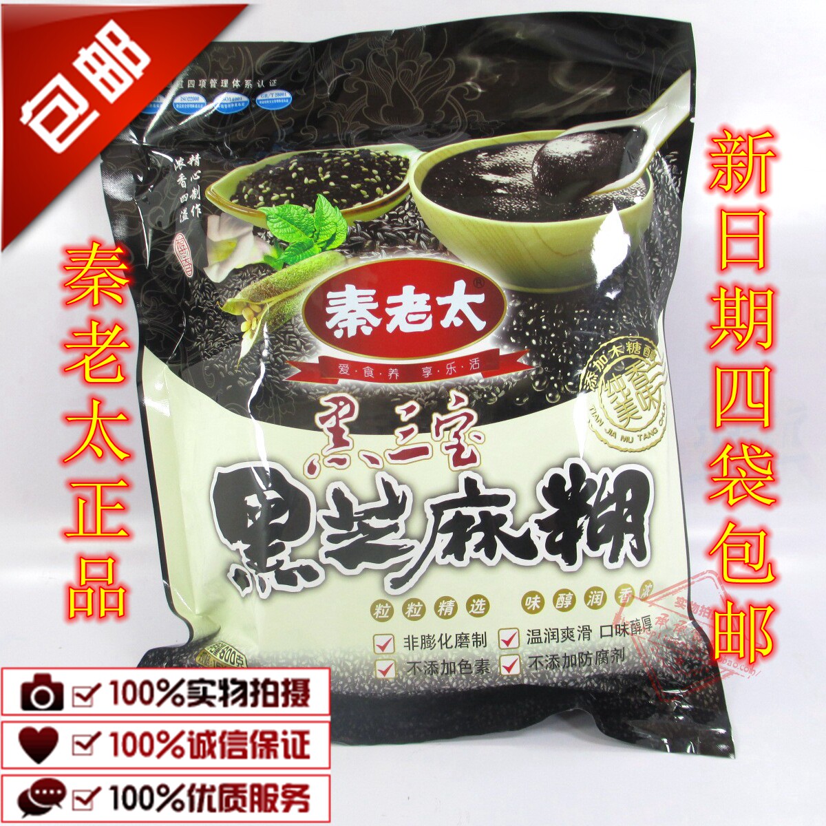 Qin Old Too Black Triple Treasure Black Sesame Burnt 600g Pregnant Woman Students Middle Aged Meal Nutritious Breakfast Hair Three Bags