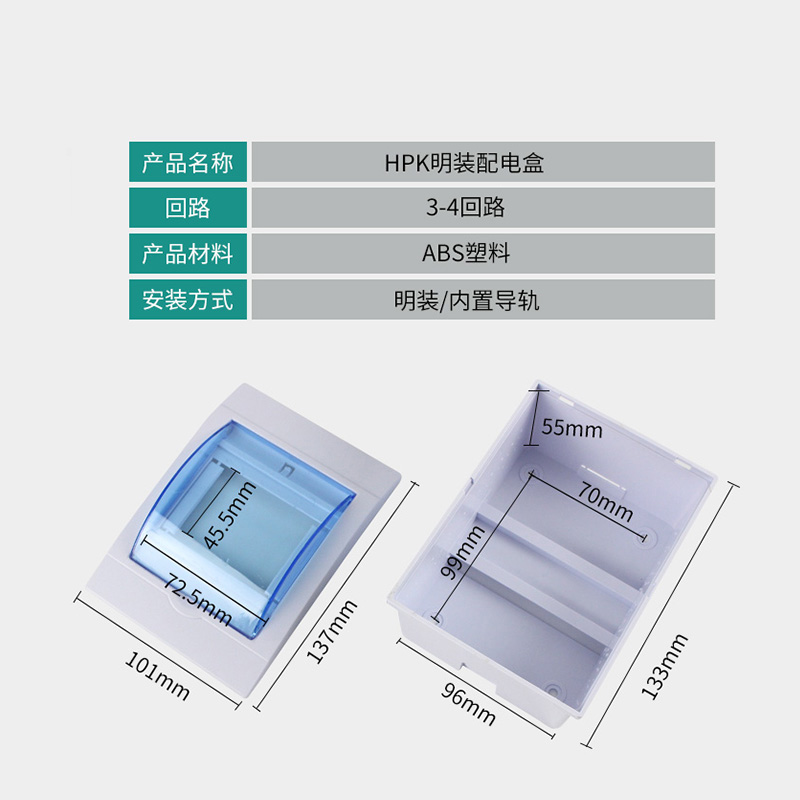 Surface mounted plastic air conditioner 3-4 position air switch waterproof box 3P 4P air open box Three or four circuits