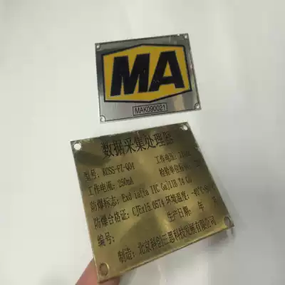 Copper aluminum MA sign custom equipment nameplate printing stainless steel metal engraving bronze instrument panel corrosion processing