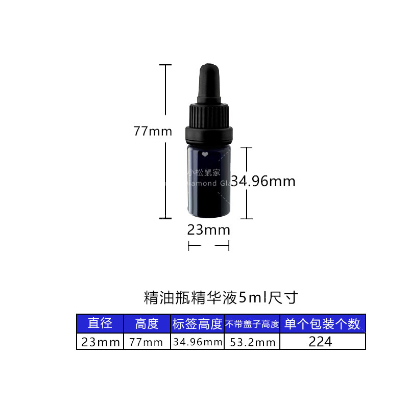 European imported high-grade optical glass purple black essential oil bottle essence 5ml travel sub-pack dropper set