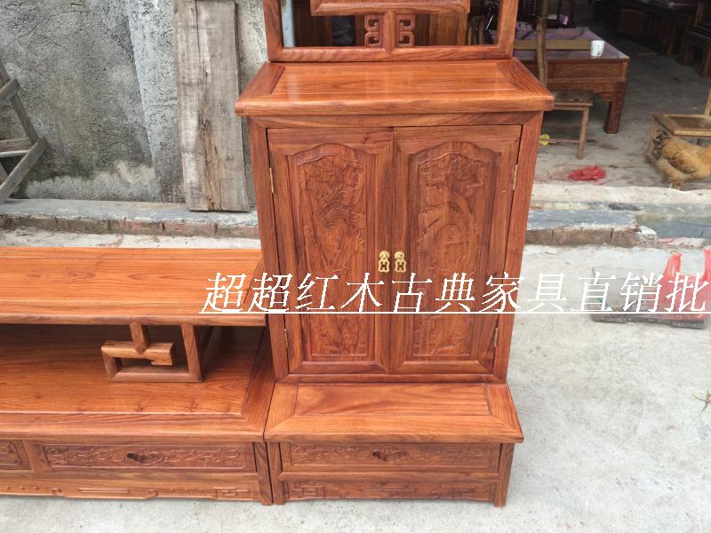 Red Wood Furniture TV Wall Bou Gurack Flowers Pear Wood Price-hedgehog Purple Sandalwood Background Wall Middle Style Solid Wood Antique Multi-Treasure Cabinet