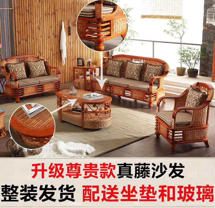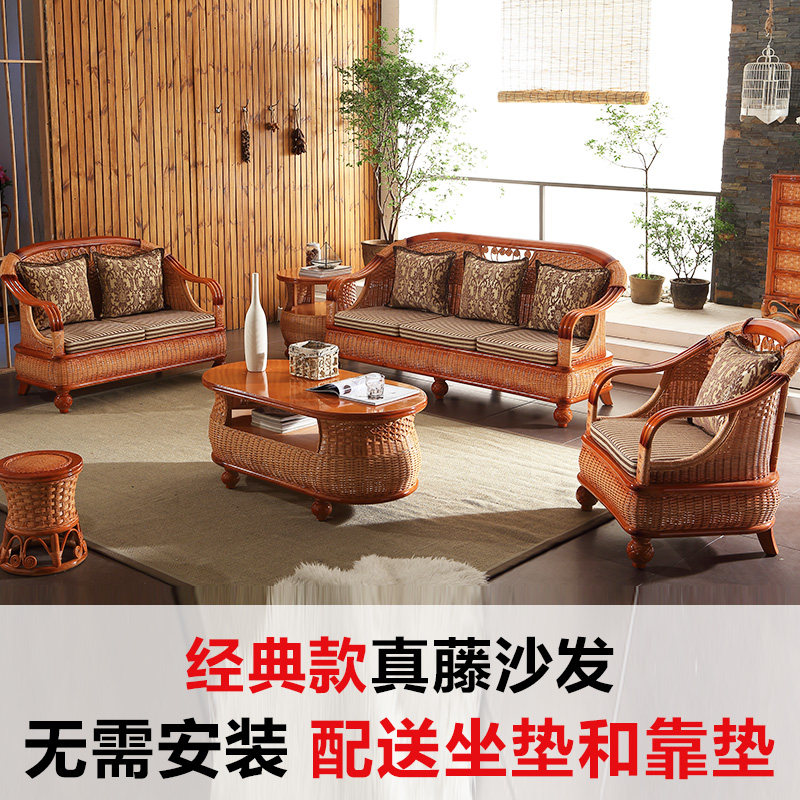 Rattan Sofa Living-room Combined Rattan Chair Sofa 5 pieces Rattan Bamboo Sofa Solid Wood Sofa Vine Wooden Sofa Rattan Furniture Furniture