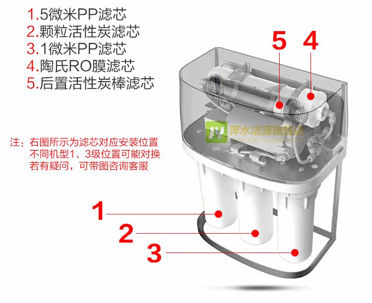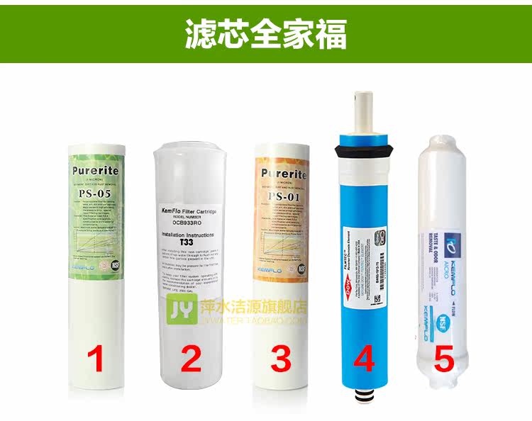5-micron PP cotton * 1 branched (first level) front active carbon (second level) 1 micron PP cotton * 1 branched (third grade) RO membrane filter core 50G (fourth grade) post activated carbon T33 (