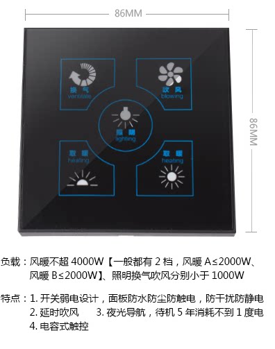 Smart touch touch Yuba switch panel 86 type wind heating universal waterproof five-in-one smart Yuba switch