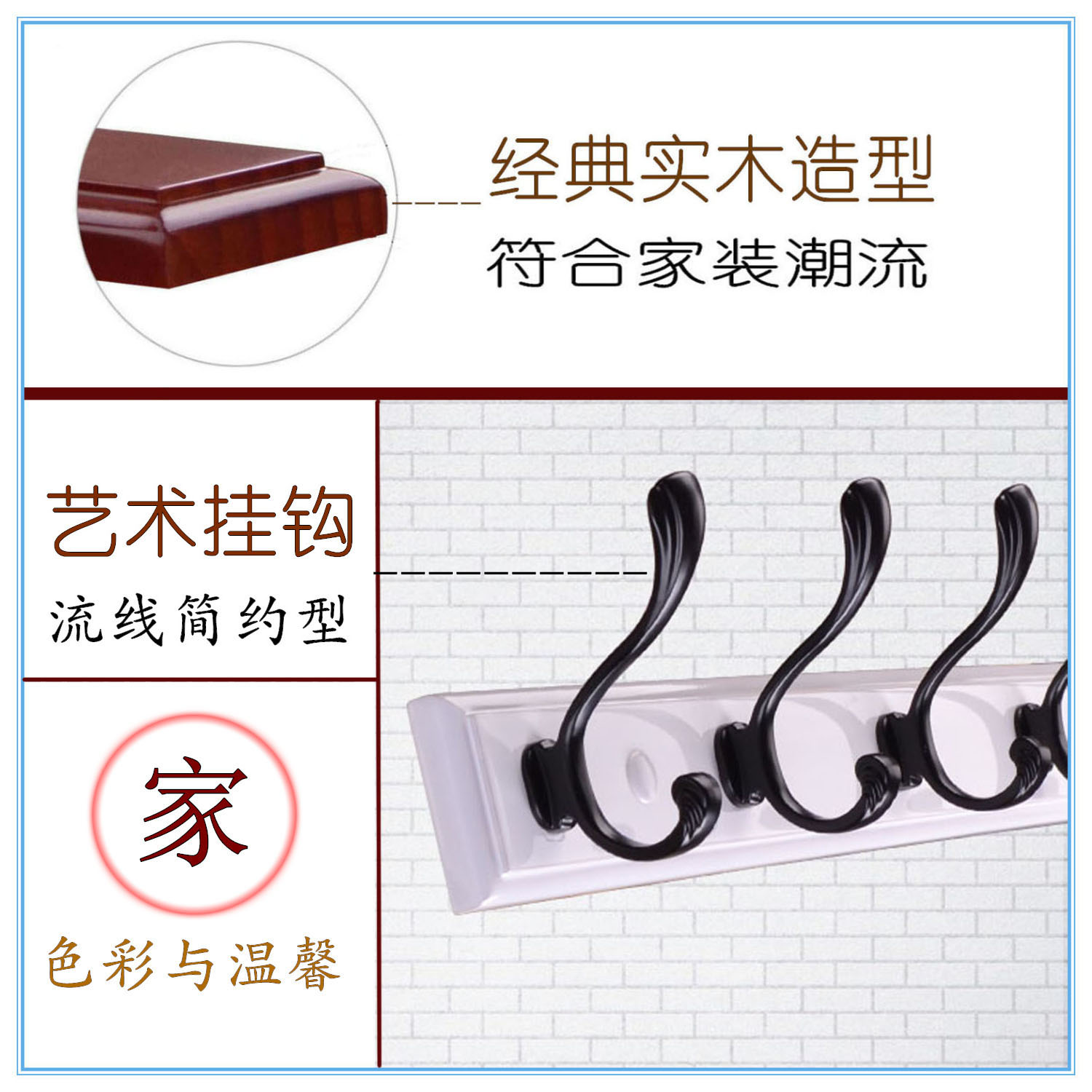 Solid wooden coat rack European style creative entrance door wall hanging clothes metal hook frame Bedroom double row hook