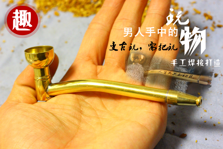 (Everyday Special) Jintai Pure Brass Pipe Dry Tobacco Bag Personalized Tobacco Rod Dual-purpose Portable Curved Short Smoking Gun